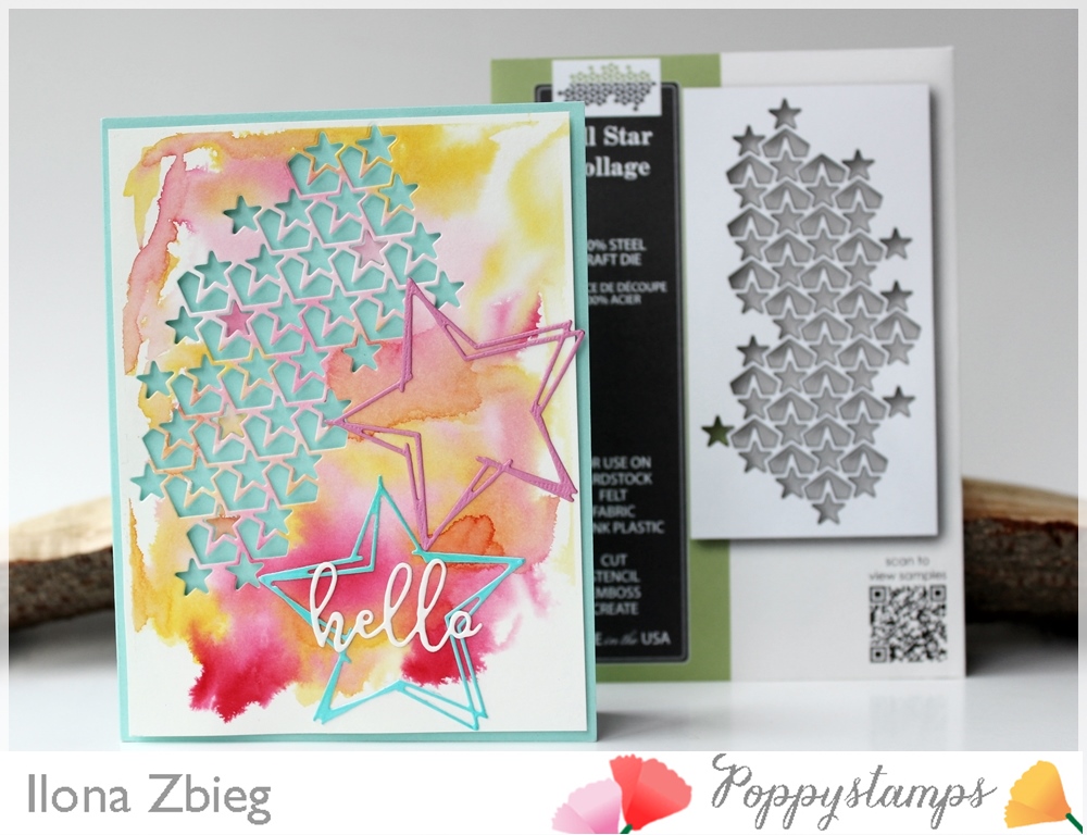 Akwarelowe tło i wycięte gwiazdeczki wykrojnikiem do tła - to świetne połączenie.